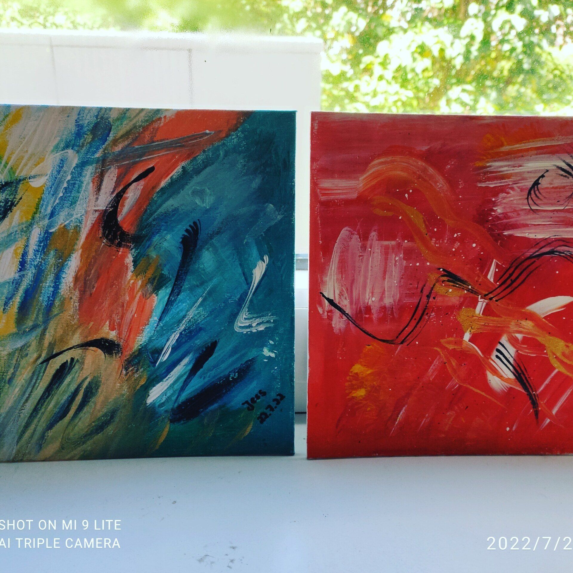 Vor ein paar Monaten habe ich meine Leidenschaft für Kunstmalerei wieder entdeckt und bin fleißig dabei.